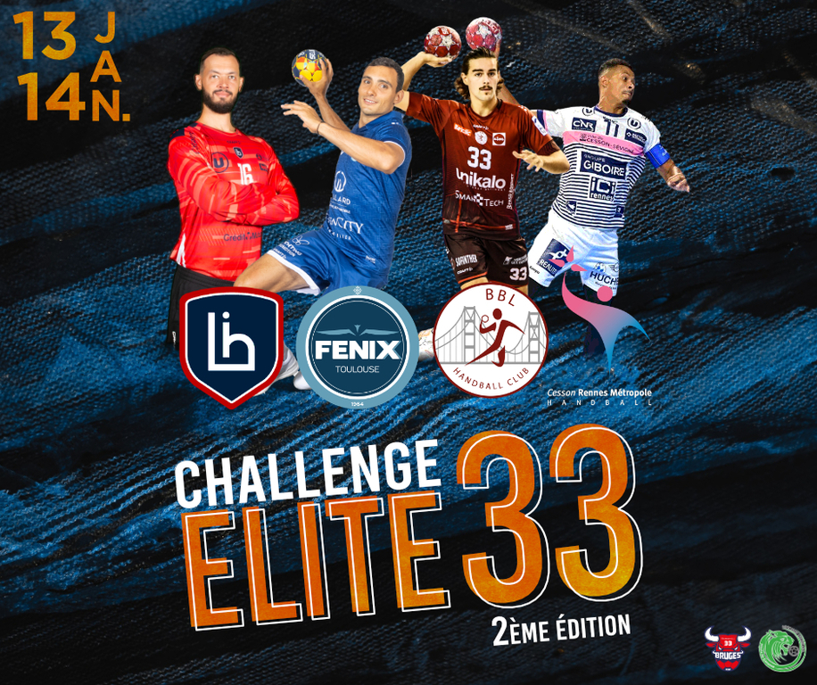Les 13 et 14 janvier, venez découvrir le handball masculin de haut-niveau en participant au Challenge Elite 33. Pour cette 2ème édition, le BBL sera présent aux côtés de trois équipes de Starligue: Cesson, Limoges et Toulouse.